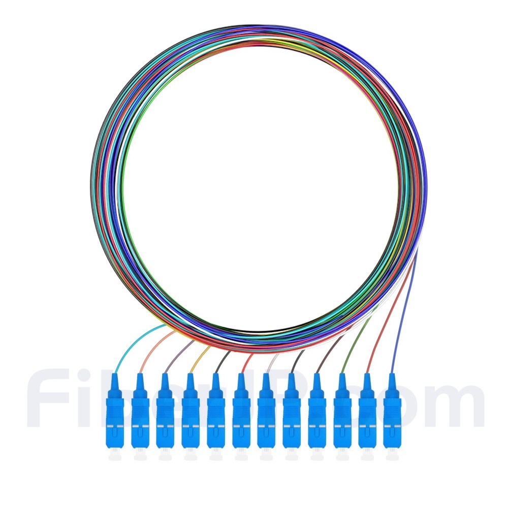 12芯 SC/UPC シングルモード カラーコード 光ファイバピグテール、ジャケットなし